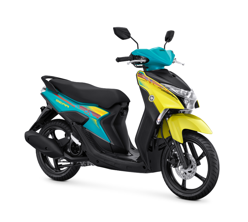Untuk Yamaha Gear 125 Standard Version memiliki konsep Active dan Artistic dengan tarikan garis design yang artsy, memiliki 5 (lima) pilihan, Seperti warna Dull Blue yang menjadi tren warna saat ini setelah diperkenalkan Yamaha di awal Tahun 2023, kemudian ada Orange Green untuk anda yang energik dan untuk yang suka menjadi pusat perhatian ada warna Cyan Yellow.
