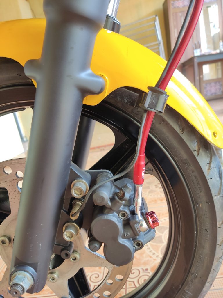 Parts lainnya, cuma direkondisi saja, ban masih aman, Velg Repaint, Shock depan repaint ulang, saklar-saklar diganti, master rem depan belakang diganti, kaliper belakang ganti, selang rem ganti, jok bungkus ulang dan rekondisi lampu depan serta belakang.