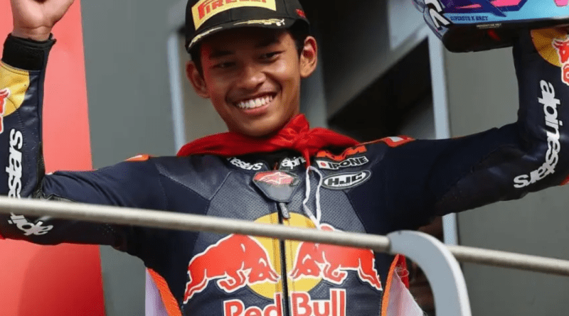 Roda2makassar.com – Pembalap Indonesia, Veda Ega Pratama, sukses mengunci gelar runner up Red Bull Rookies Cup 2025 usai finis kelima dalam Race